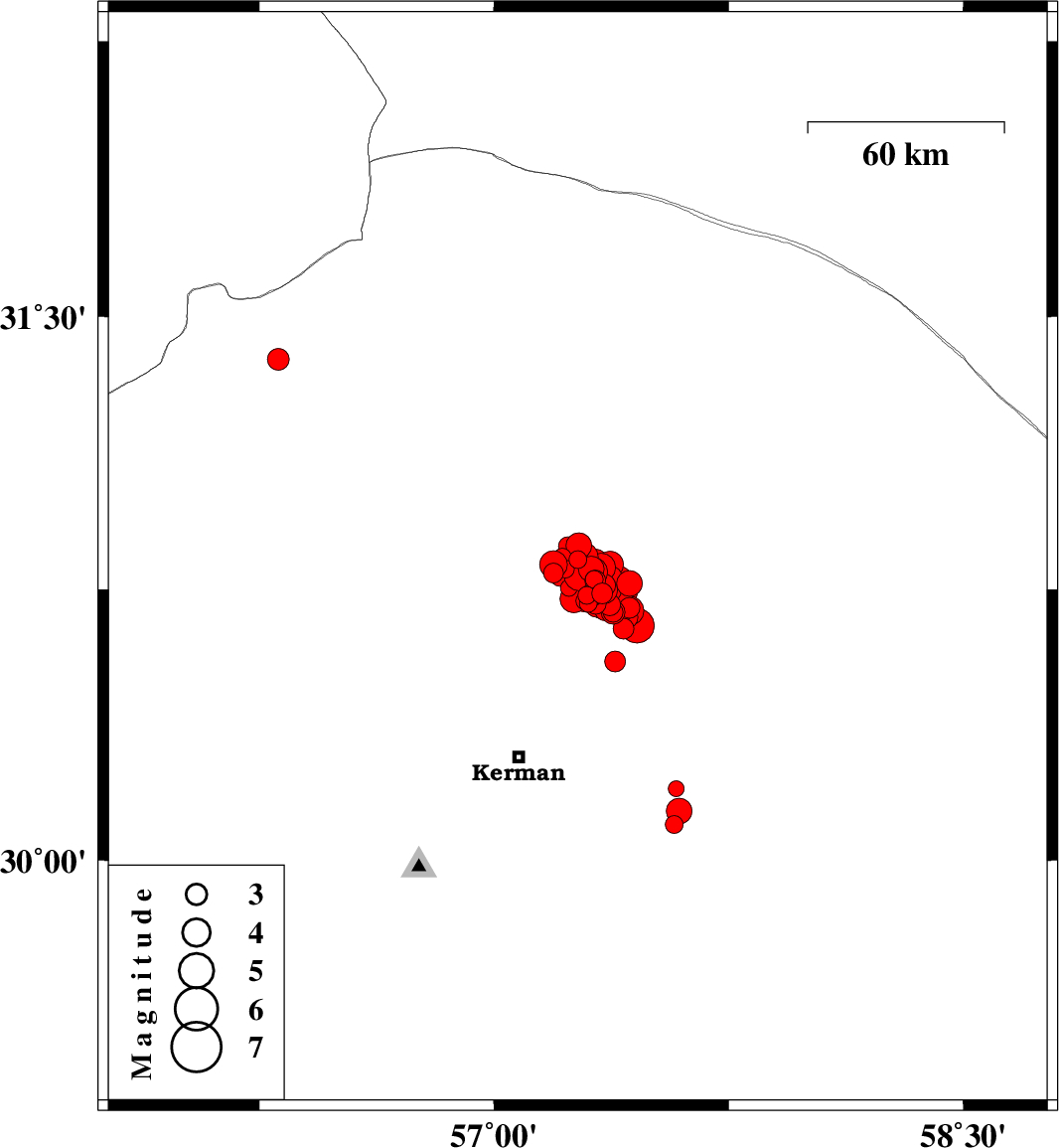 | 2017/12/12 | 10:26:26.1 | 13:56:26.1 | 30.774 | 57.293 | 14 | ML4 | Kerman Province, 58 km North-East of Kerman | ||