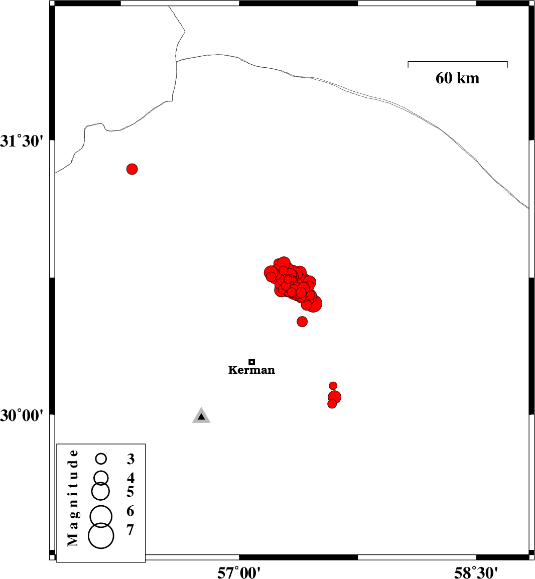 2017/12/02 10:50:40.4 14:20:40.4 30.75157.35615 ML4.1 Kerman Province, 58 km North-East of Kerman