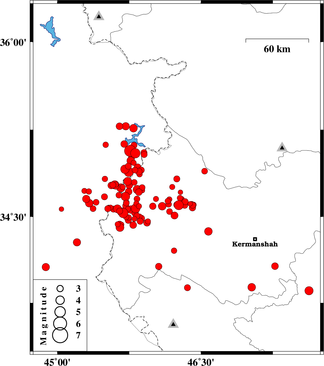 | 2017/11/27 | 02:10:12.1 | 05:40:12.1 | 34.903 | 45.876 | 15 | ML2.9 | Kermanshah Province, 16 km North of Tazehabad | ||