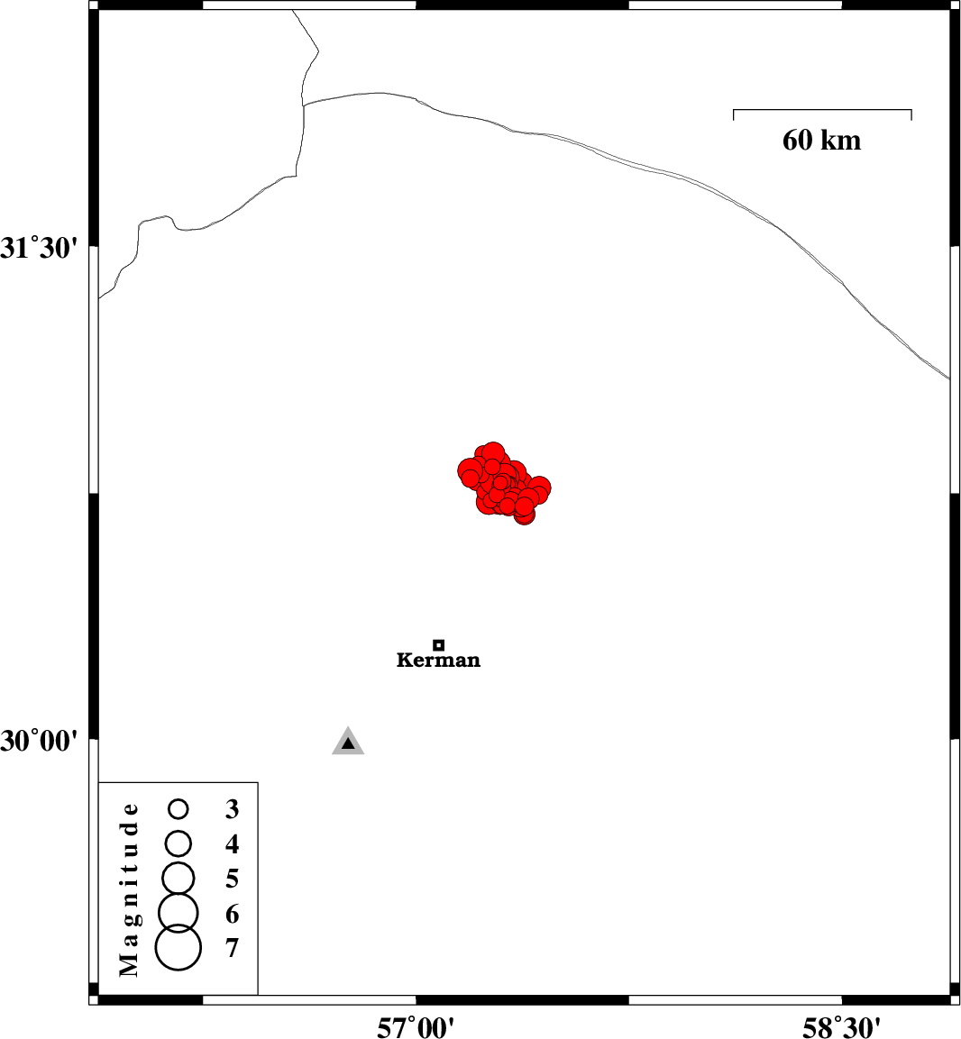 | 2017/12/12 | 10:26:26.1 | 13:56:26.1 | 30.774 | 57.293 | 14 | ML4 | Kerman Province, 58 km North-East of Kerman | ||