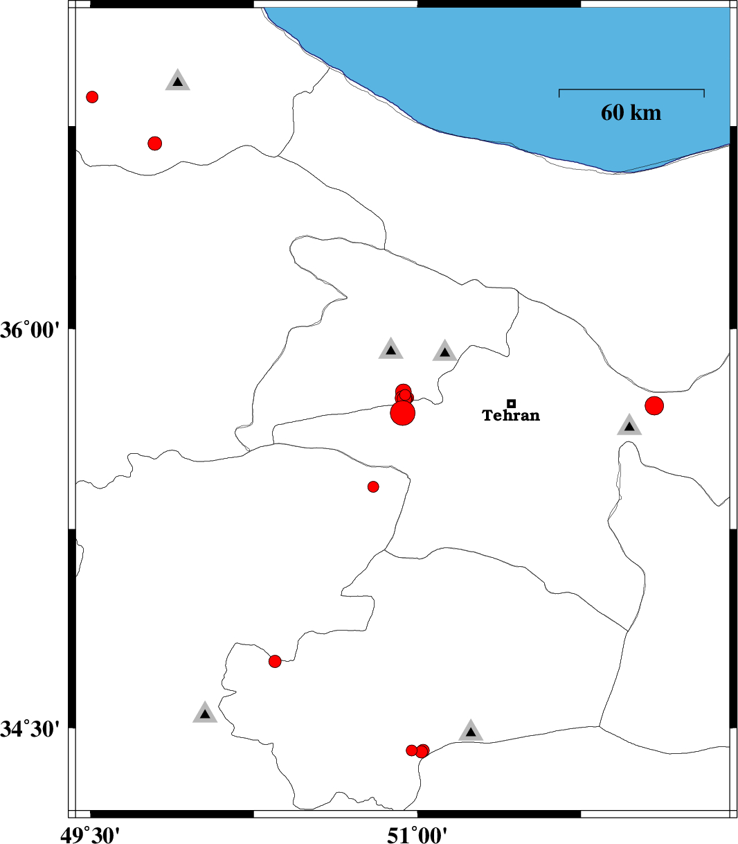 | 2017/11/30 | 12:52:46.1 | 16:22:46.1 | 35.739 | 50.952 | 15 | ML2.3 | Tehran Province, 7 km of Karaj | ||