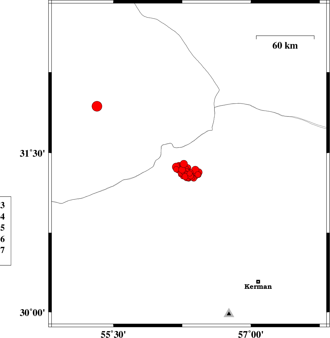 2017/12/19 14:47:42.3 18:17:42.3 30.72357.36214 ML3 Kerman Province, 55 km North-East of Kerman