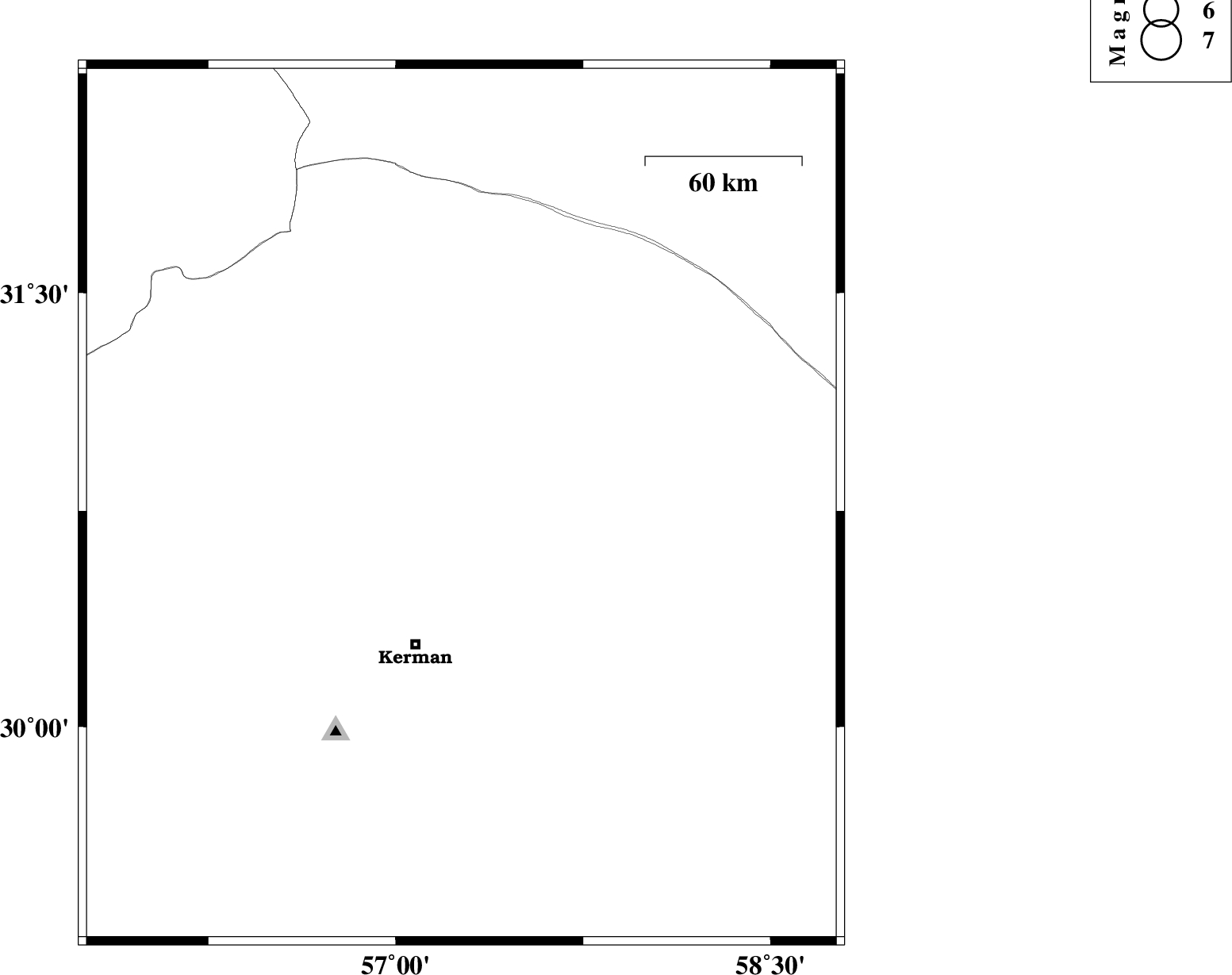 2017/12/16 | 02:20:30.4 | 05:50:30.4 | 30.79 | 57.275 | 15 | ML:4.5 | Kerman Province, 59 km North-East of Kerman | ||
