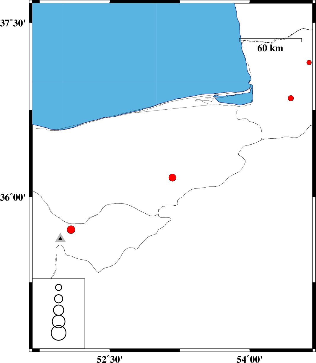 | 2017/11/28 | 06:53:21.7 | 10:23:21.7 | 36.853 | 54.44 | 14 | ML2.7 | Golestan Province, 2 km of Gorgan |