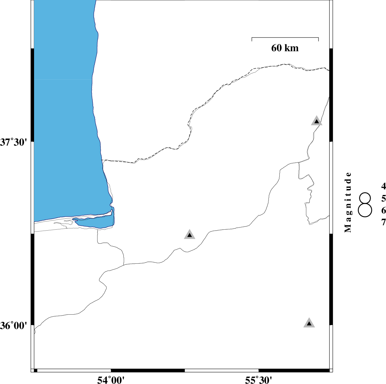 | 2017/11/28 | 06:53:21.7 | 10:23:21.7 | 36.853 | 54.44 | 14 | ML2.7 | Golestan Province, 2 km of Gorgan |