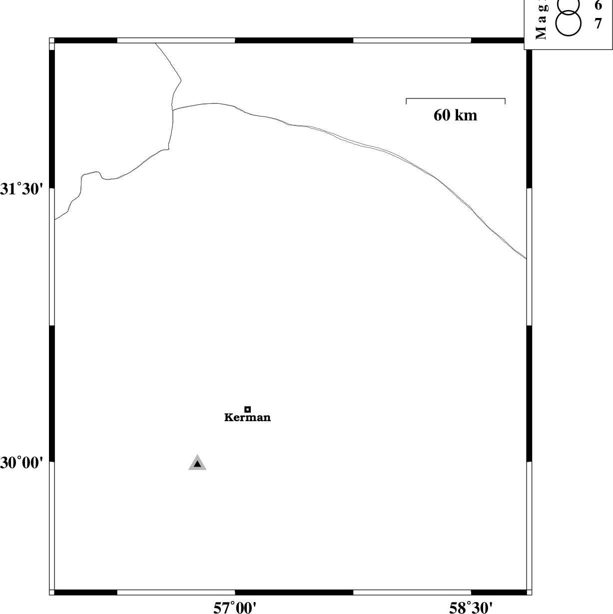 2017/12/02 10:50:40.4 14:20:40.4 30.75157.35615 ML4.1 Kerman Province, 58 km North-East of Kerman