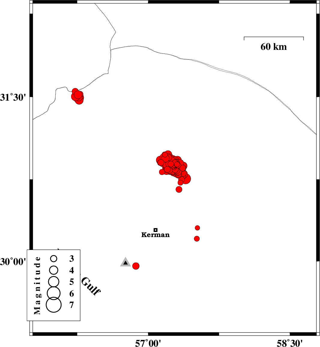 2017/12/16 | 02:20:30.4 | 05:50:30.4 | 30.79 | 57.275 | 15 | ML:4.5 | Kerman Province, 59 km North-East of Kerman | ||