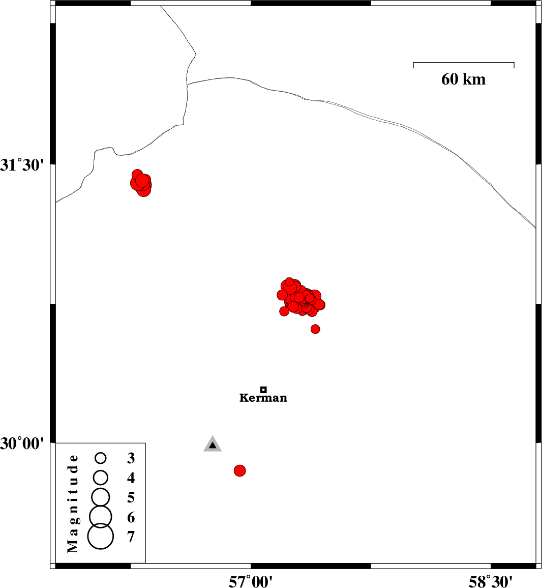 2017/12/25 03:34:16.3 07:04:16.3 30.78857.35214 ML4 Kerman Province, 61 km North-East of Kerman