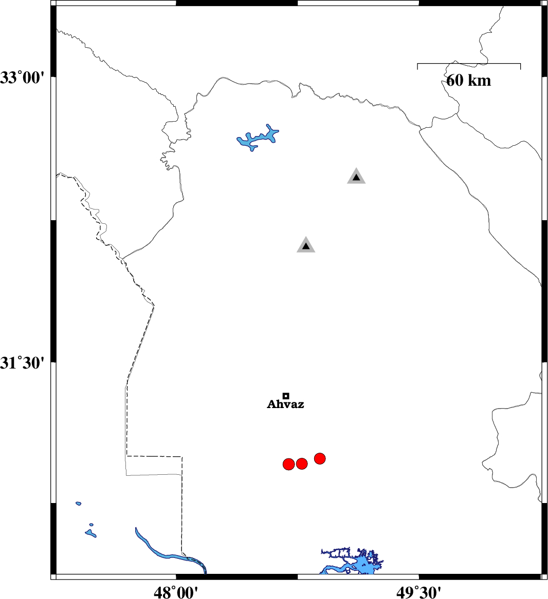 2017/12/14 | 21:53:53.6 | 01:23:53.6 | 31.718 | 48.698 | 14 | ML:3.2 | Khoozestan Province, 44 km North of Ahvaz | ||