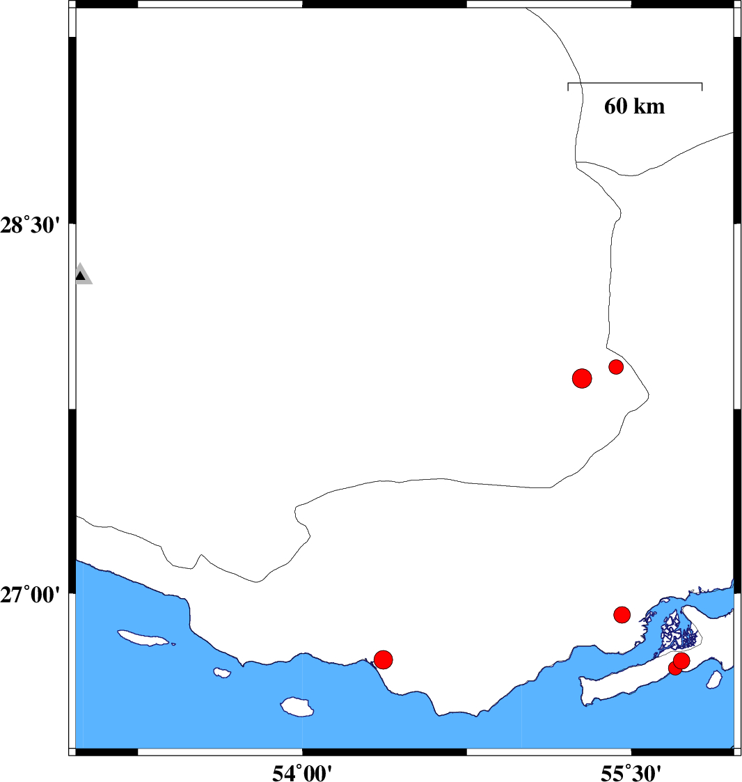 | 2017/12/21 | 11:24:32.2 | 14:54:32.2 | 28.867 | 54.441 | 15 | ML3 | Fars Province, 16 km North of Darab | ||