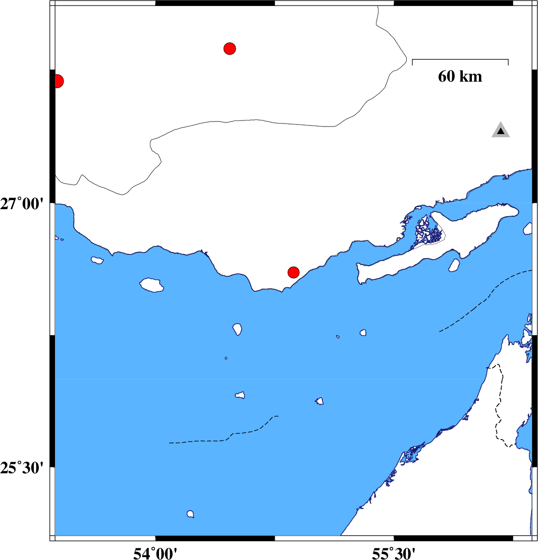 2017/12/24 | 10:57:15.1 | 14:27:15.1 | 27.685 | 53.379 | 14 | ML:3.8 | Fars Province, 44 km North-East of Lamerd |