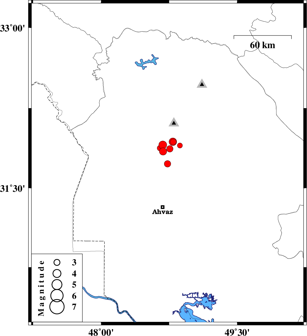 2017/12/30 | 07:48:20.3 | 11:18:20.3 | 31.845 | 48.683 | 15 | ML:3.7 | Khoozestan Province, 27 km South-West of Shushtar | ||