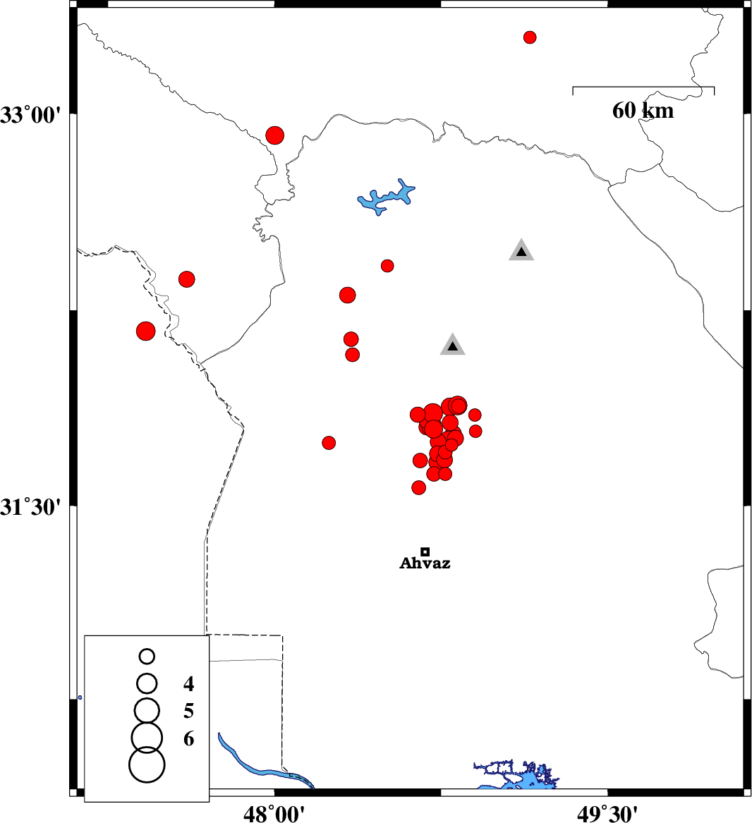 | 2017/12/21 | 08:43:15.4 | 12:13:15.4 | 31.673 | 48.685 | 15 | ML3 | Khoozestan Province, 39 km North of Ahvaz | ||