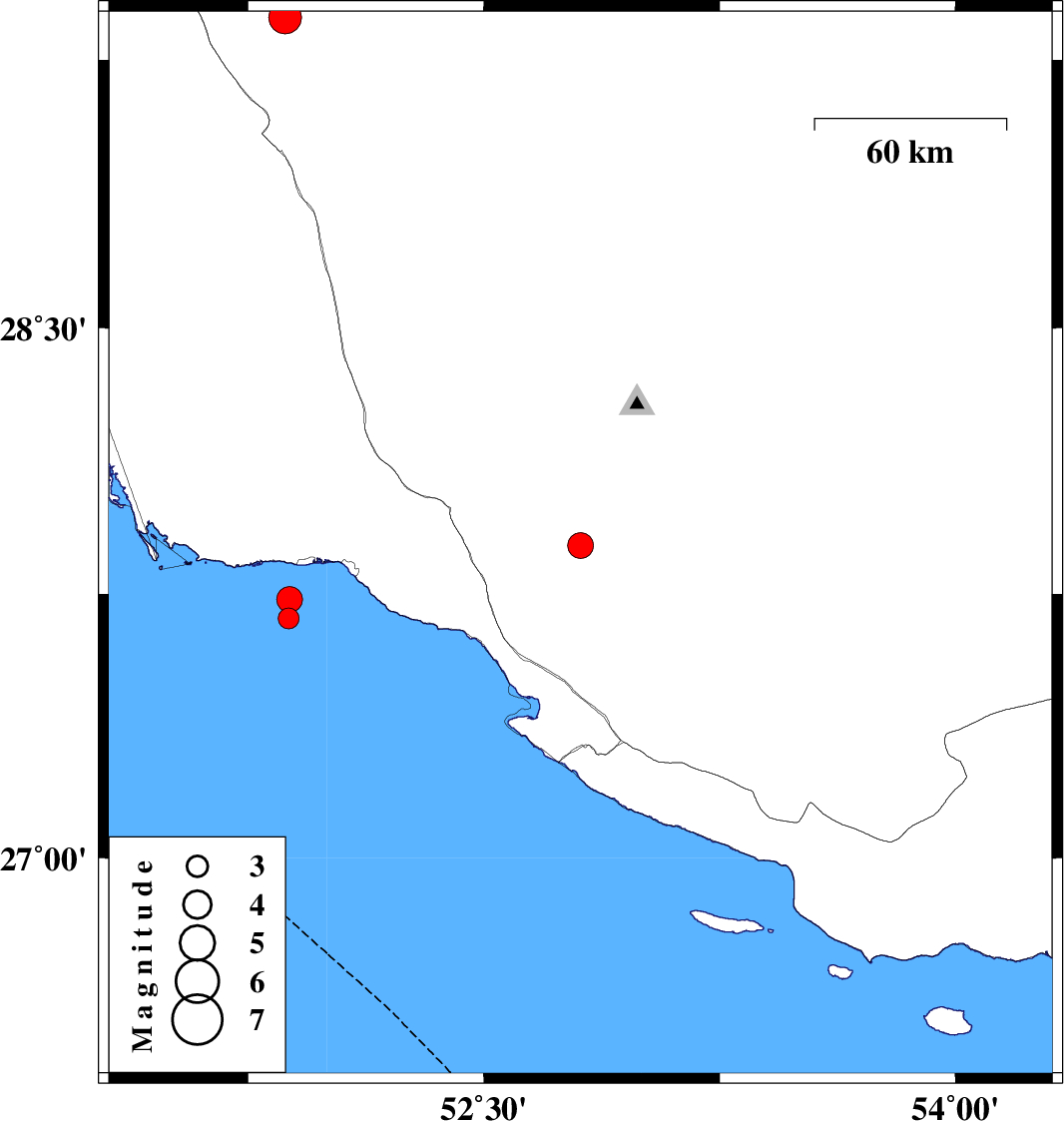 | 2017/12/27 | 00:34:04.9 | 04:04:04.9 | 27.735 | 51.882 | 17 | ML3.6 | Persian Gulf, 20 km -West of Bandar-e kangan |
