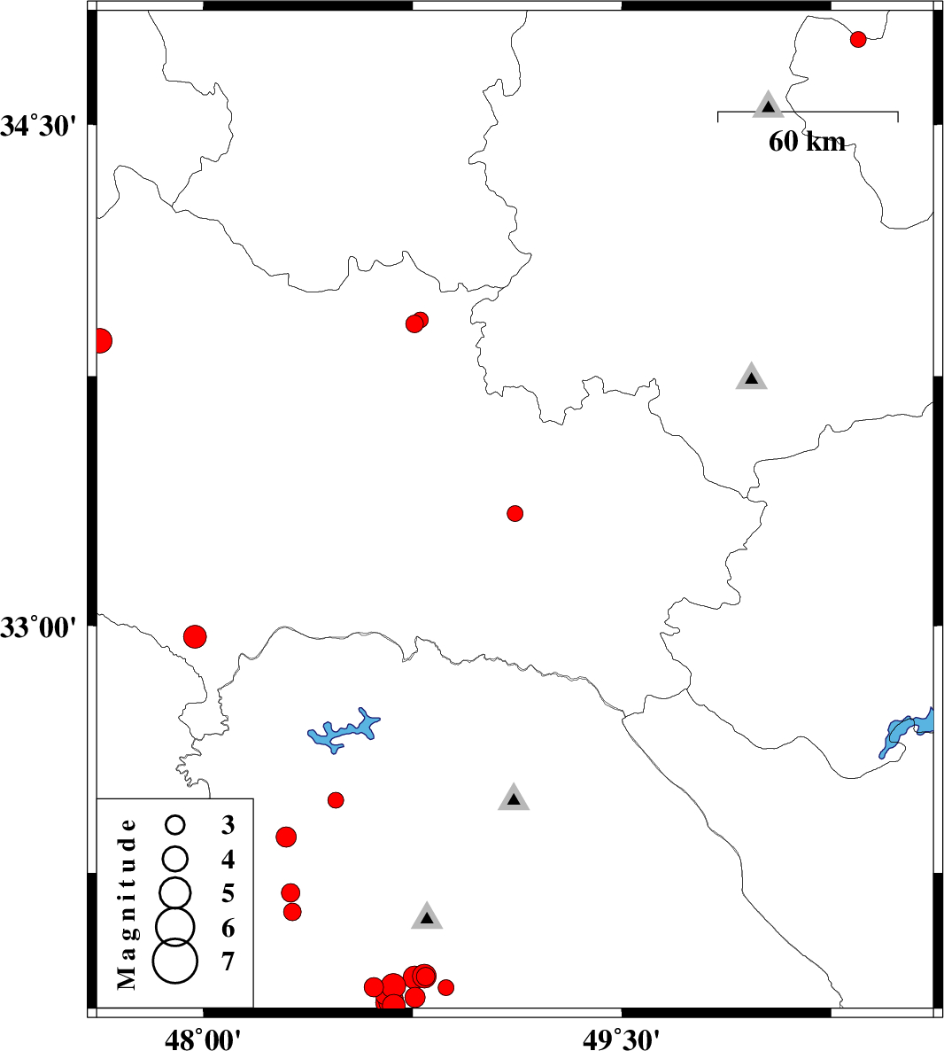 | 2017/12/18 | 11:21:23.8 | 14:51:23.8 | 32.967 | 47.969 | 17 | ML3.6 | Lorestan Province, 32 km South-East of Pol-e dokhtar | ||