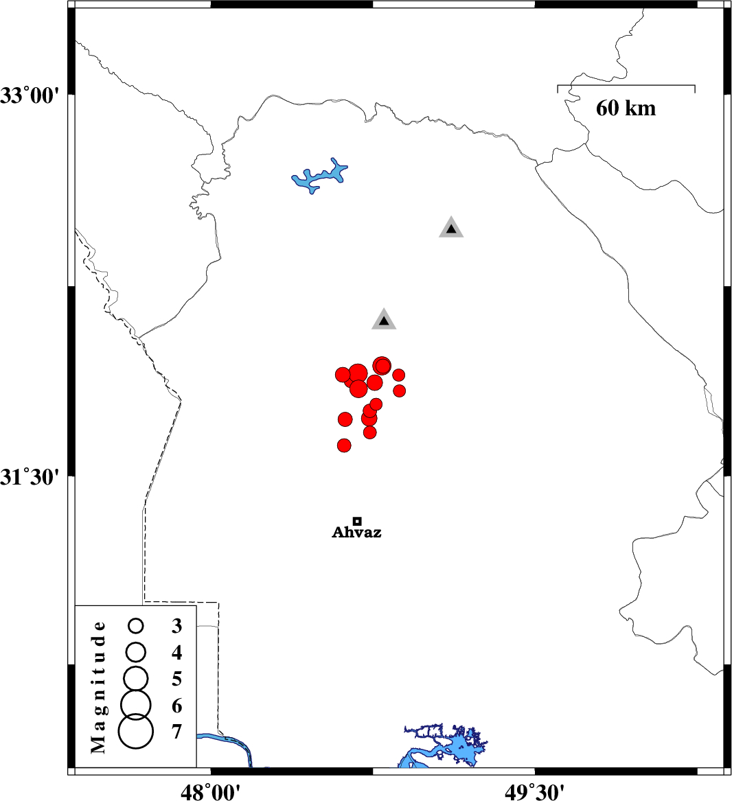 2017/12/31 03:51:44.9 07:21:44.9 31.72548.62215 ML3 Khoozestan Province, 45 km North of Ahvaz