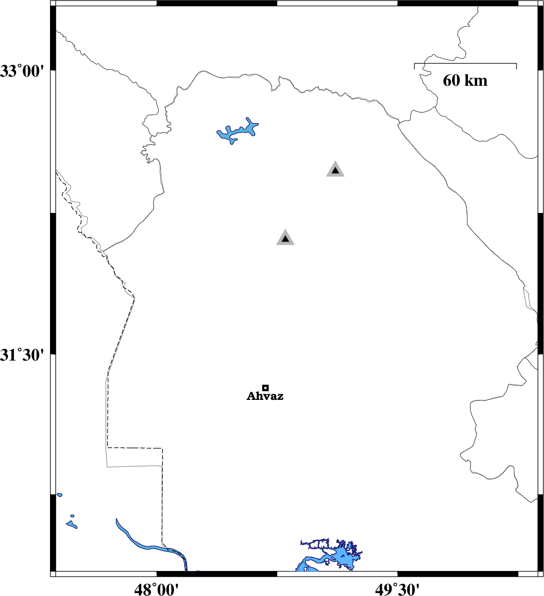 | 2017/12/25 | 00:20:33.1 | 03:50:33.1 | 31.876 | 48.649 | 15 | ML2.8 | Khoozestan Province, 27 km South-West of Shushtar |