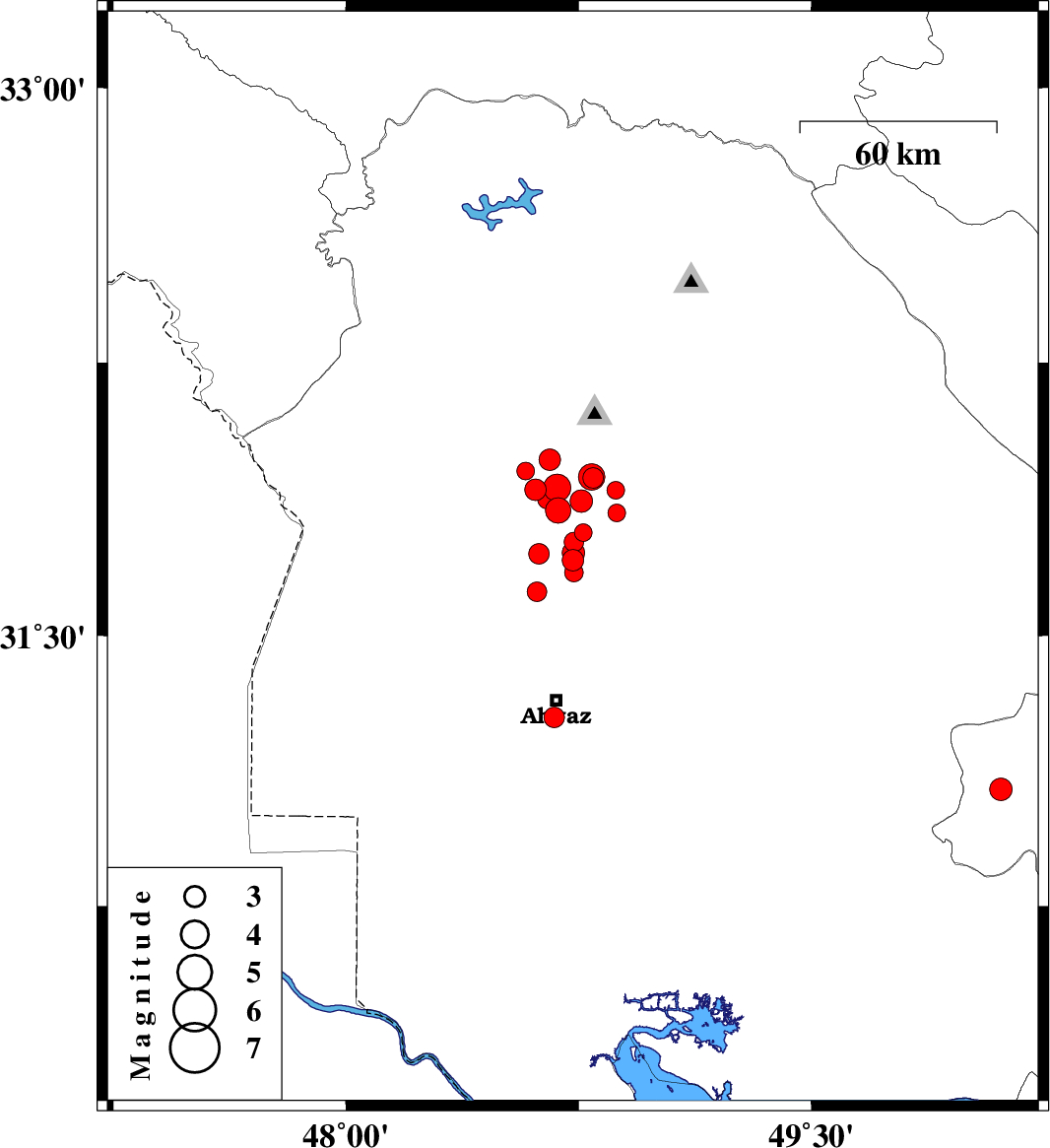 | 2018/01/01 | 13:39:47.4 | 17:09:47.4 | 31.273 | 48.671 | 5 | ML2.9 | Khoozestan Province, 5 km of Ahvaz | ||
