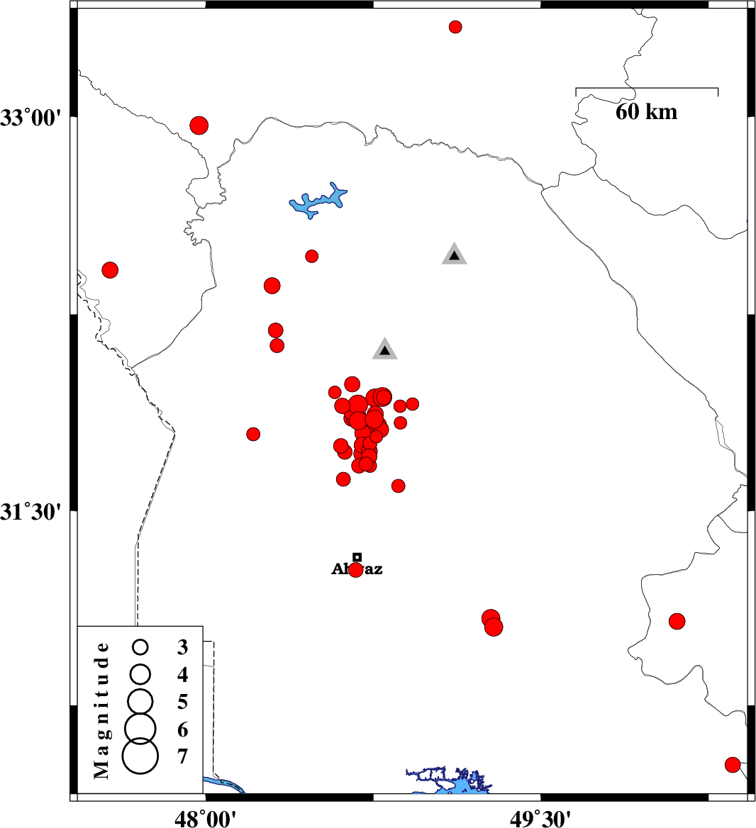 | 2017/12/21 | 08:43:15.4 | 12:13:15.4 | 31.673 | 48.685 | 15 | ML3 | Khoozestan Province, 39 km North of Ahvaz | ||