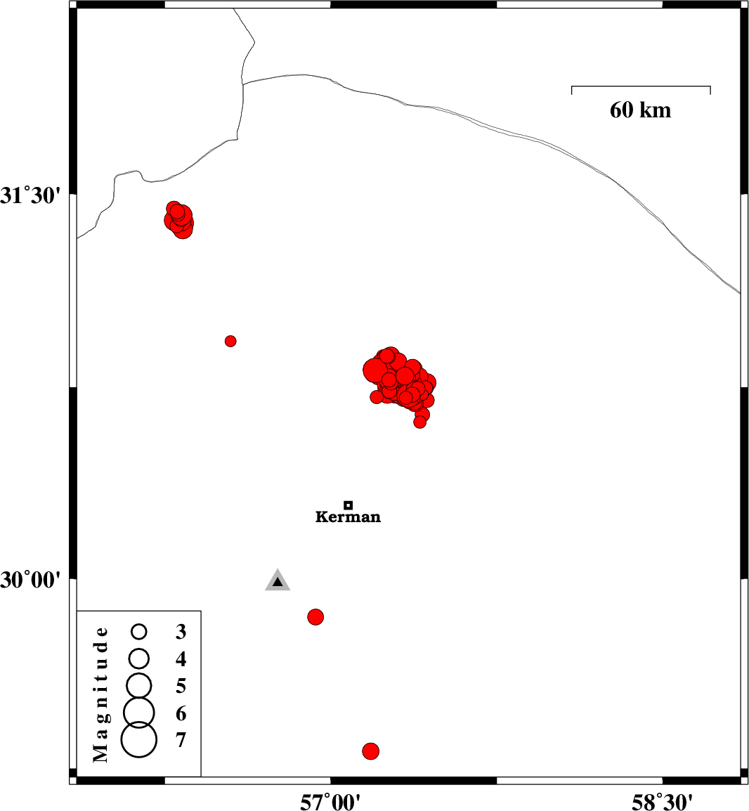 | 2017/12/12 | 09:50:29.2 | 13:20:29.2 | 30.796 | 57.311 | 15 | ML4 | Kerman Province, 61 km North-East of Kerman | ||