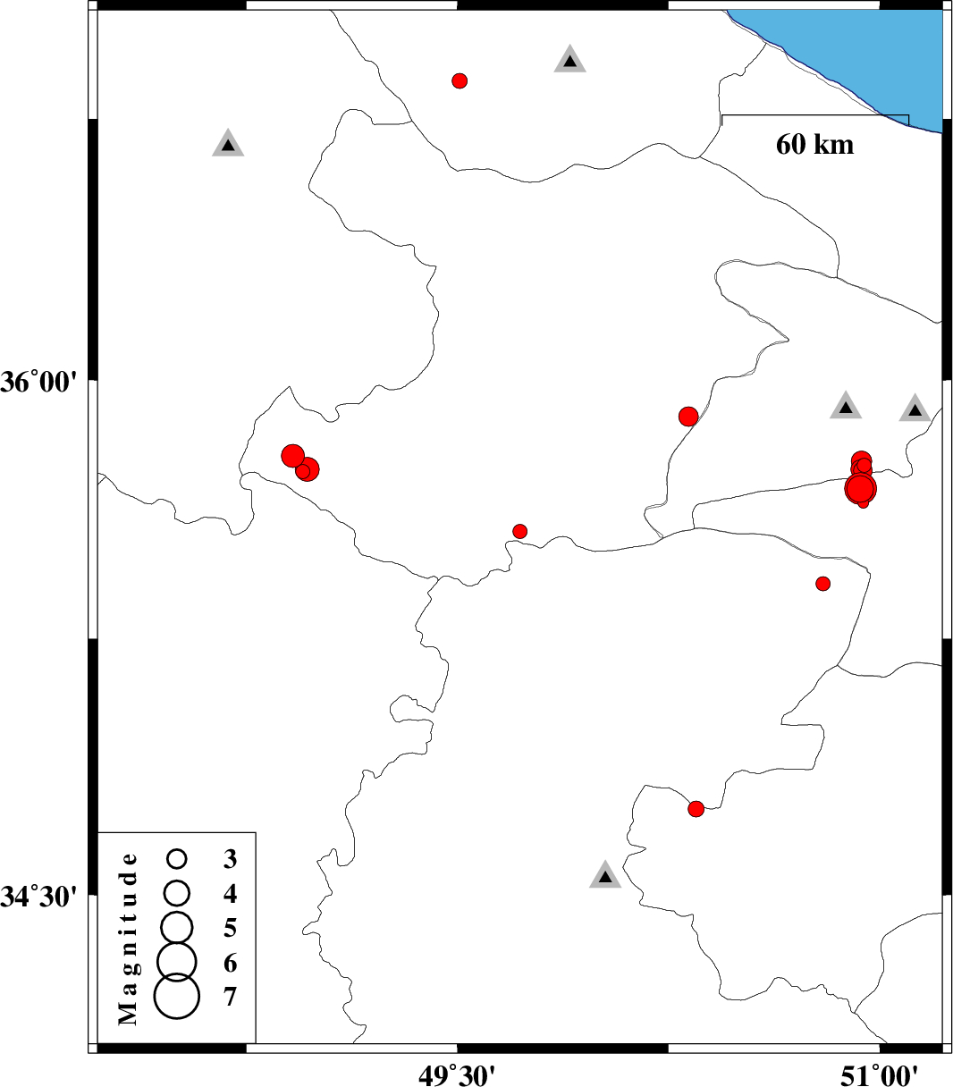 | 2018/01/02 | 22:59:29.4 | 02:29:29.4 | 35.561 | 49.722 | 14 | ML2.3 | Ghazvin Province, 56 km South of Takestan | ||