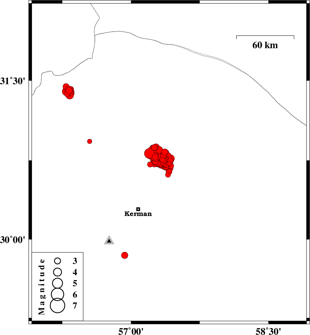| 2017/12/12 | 09:36:20.0 | 13:06:20.0 | 30.708 | 57.369 | 14 | ML3.1 | Kerman Province, 54 km North-East of Kerman | ||