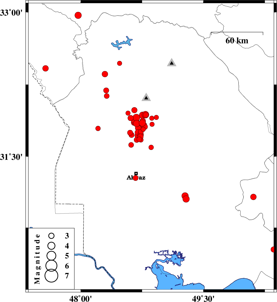 | 2017/12/21 | 08:43:15.4 | 12:13:15.4 | 31.673 | 48.685 | 15 | ML3 | Khoozestan Province, 39 km North of Ahvaz | ||