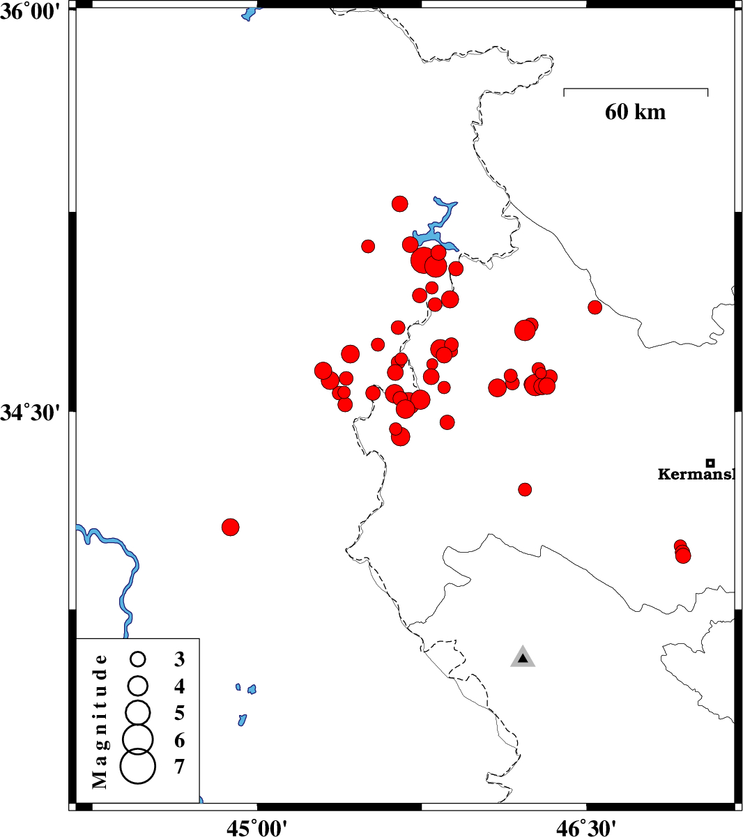 | 2017/12/09 | 06:40:31.3 | 10:10:31.3 | 34.608 | 46.162 | 6 | ML2.8 | Kermanshah Province, 30 km North-East of Sar-e pol-e zahab | ||