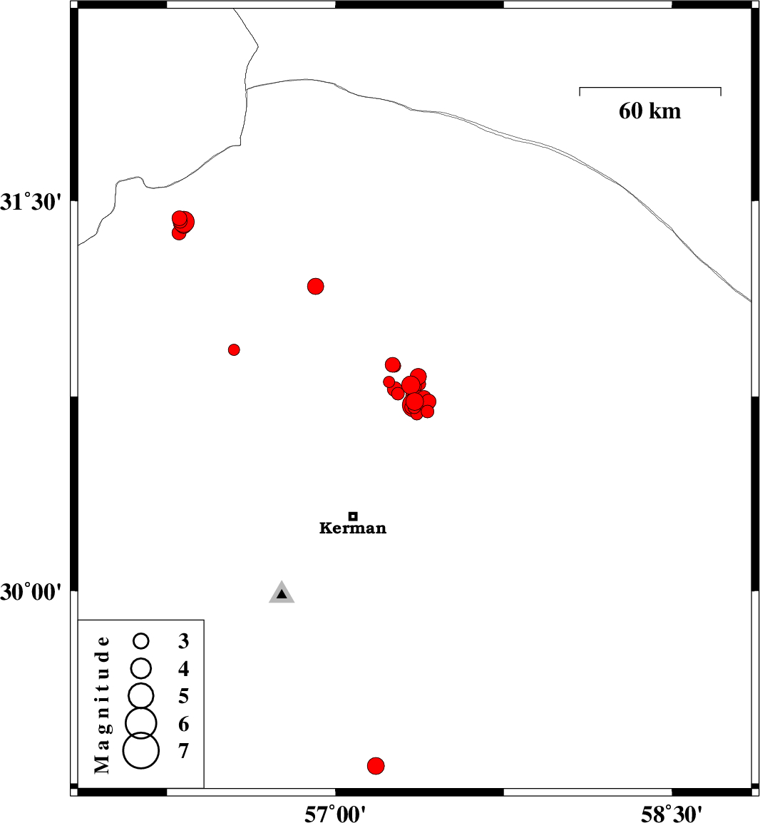 2018/01/03 04:13:11.0 07:43:11.0 30.71757.35214 ML4.8 Kerman Province, 54 km North-East of Kerman
