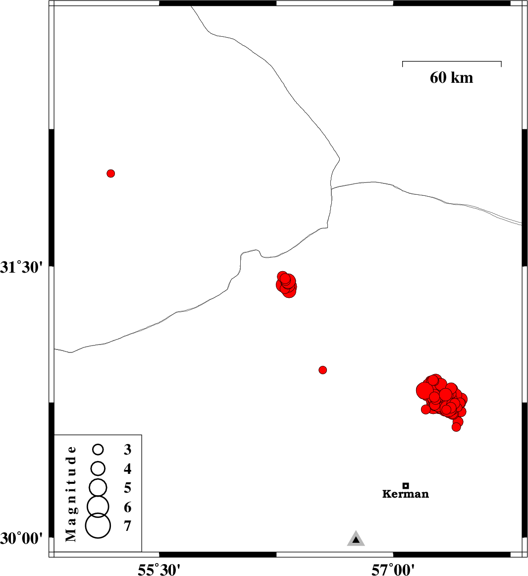 | 2017/12/06 | 01:29:51.4 | 04:59:51.4 | 30.777 | 57.399 | 14 | ML4 | Kerman Province, 62 km North-East of Kerman | ||