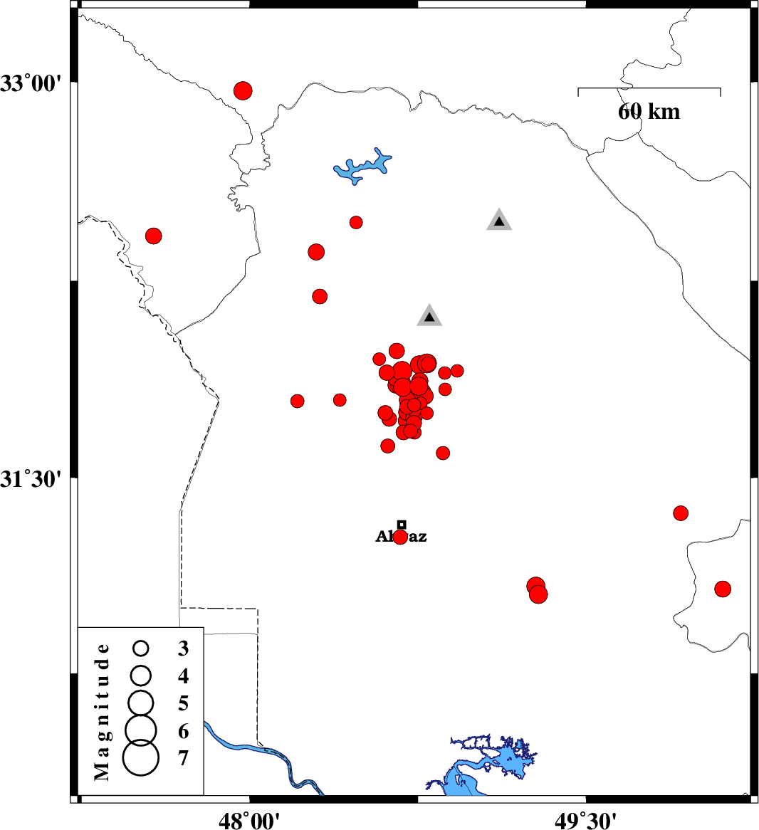| 2017/12/21 | 08:43:15.4 | 12:13:15.4 | 31.673 | 48.685 | 15 | ML3 | Khoozestan Province, 39 km North of Ahvaz | ||