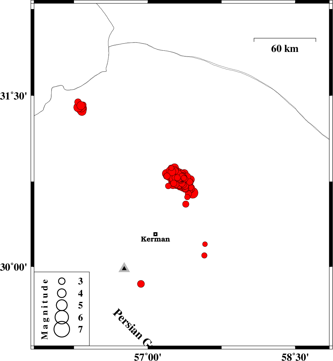 2017/12/16 | 02:20:30.4 | 05:50:30.4 | 30.79 | 57.275 | 15 | ML:4.5 | Kerman Province, 59 km North-East of Kerman | ||