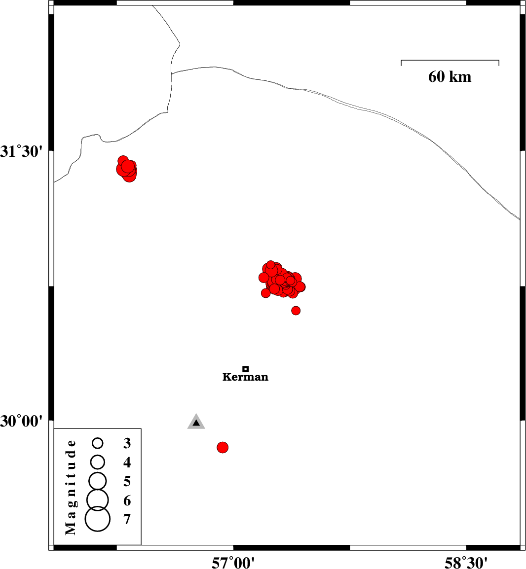 2017/12/25 03:34:16.3 07:04:16.3 30.78857.35214 ML4 Kerman Province, 61 km North-East of Kerman