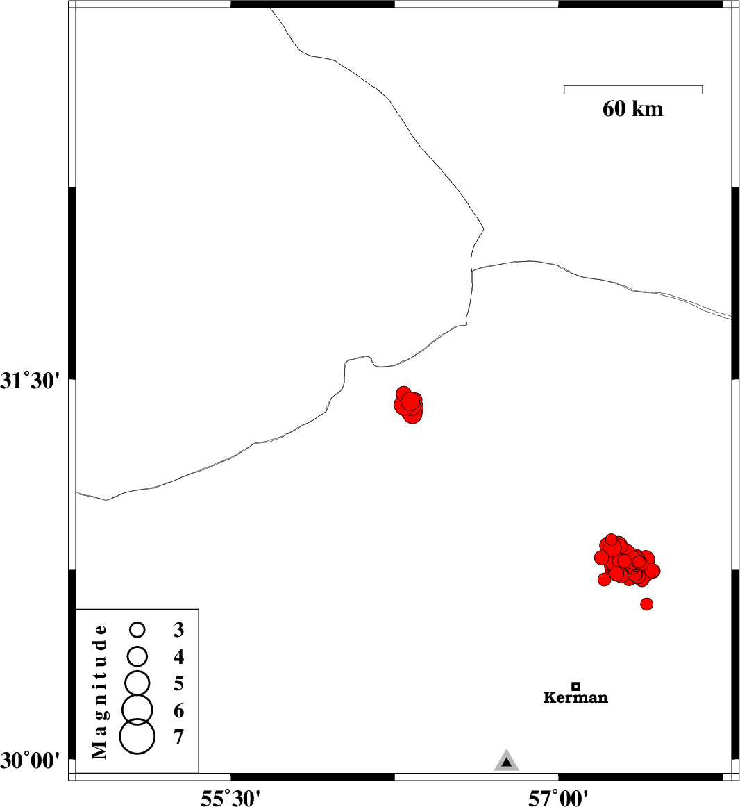 2017/12/25 12:08:23.8 15:38:23.8 30.78157.36714 ML2.6 Kerman Province, 61 km North-East of Kerman