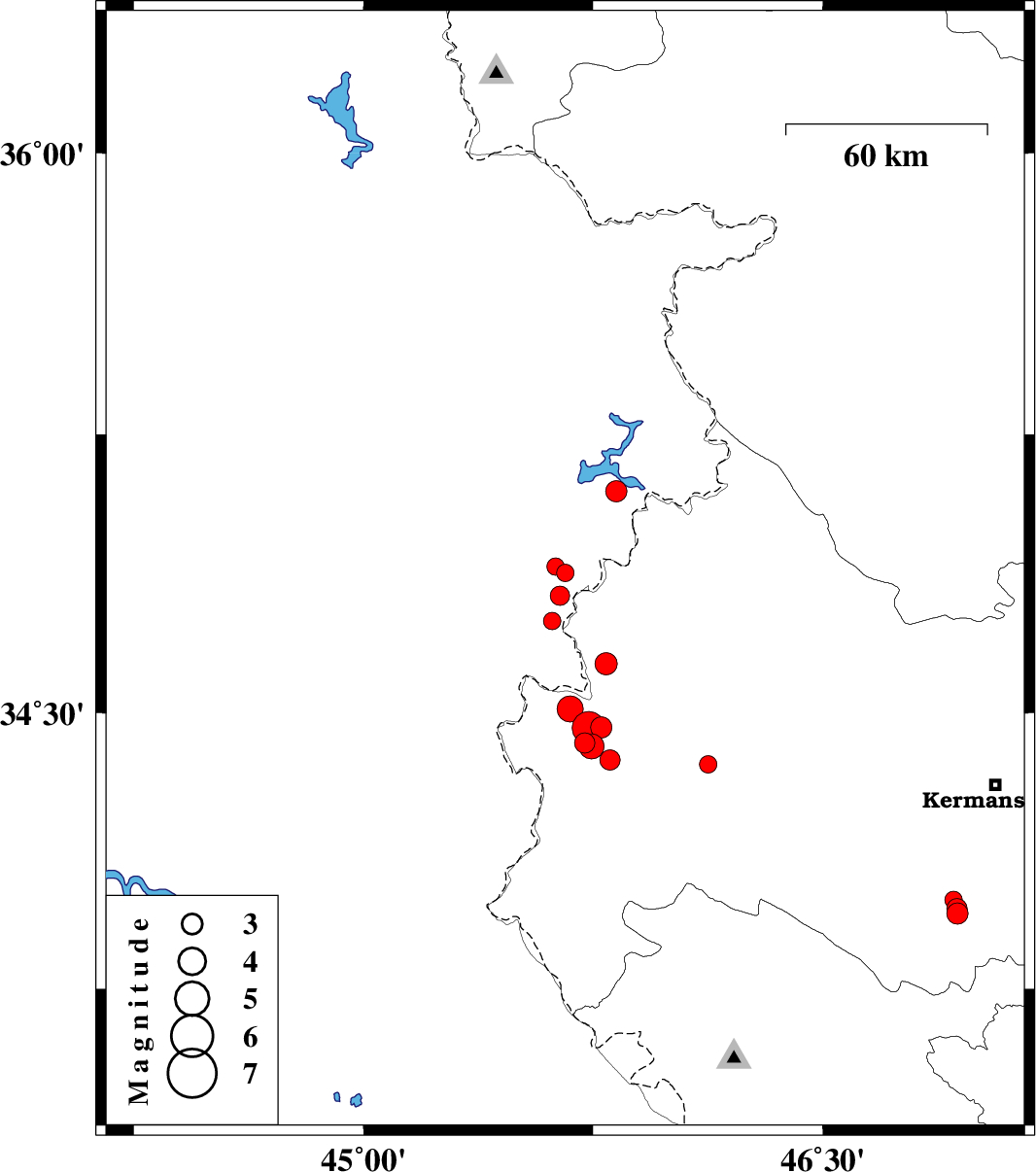 | 2018/01/04 | 08:19:11.4 | 11:49:11.4 | 33.968 | 46.938 | 14 | ML3 | Kermanshah Province, 39 km South-West of Kermanshah | ||
