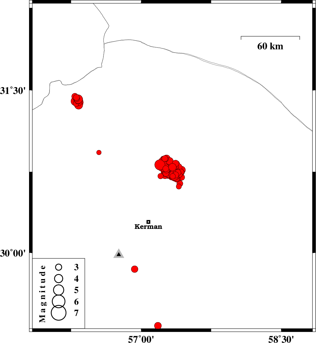 | 2017/12/12 | 09:50:29.2 | 13:20:29.2 | 30.796 | 57.311 | 15 | ML4 | Kerman Province, 61 km North-East of Kerman | ||