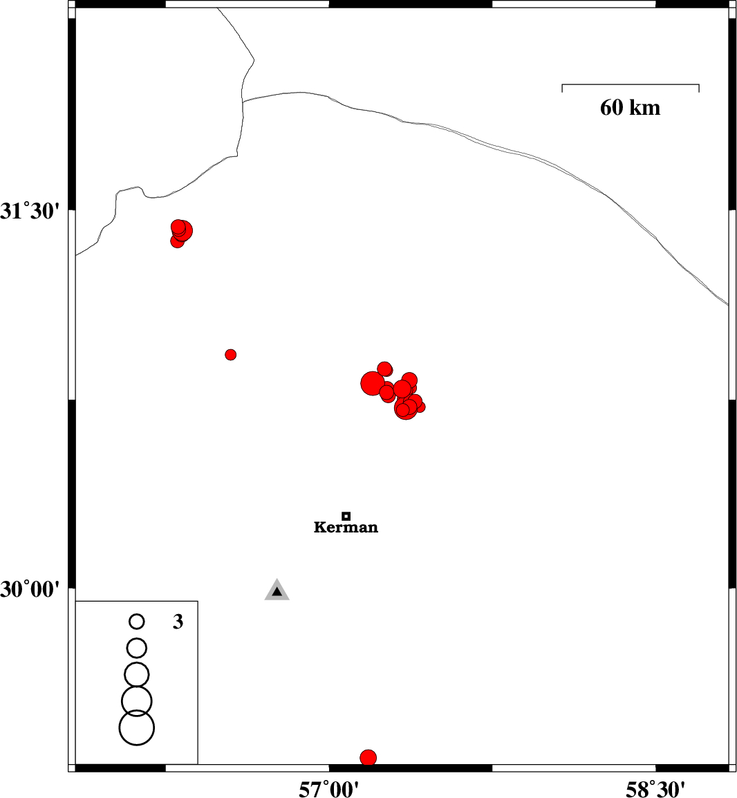 2018/01/03 15:57:14.2 19:27:14.2 30.74457.39417 ML2.9 Kerman Province, 59 km North-East of Kerman