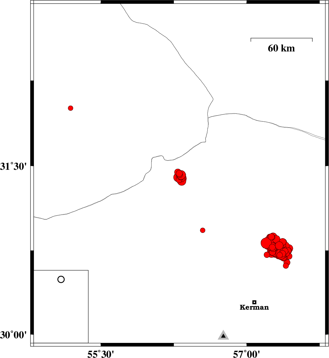 | 2017/12/12 | 10:26:26.1 | 13:56:26.1 | 30.774 | 57.293 | 14 | ML4 | Kerman Province, 58 km North-East of Kerman | ||