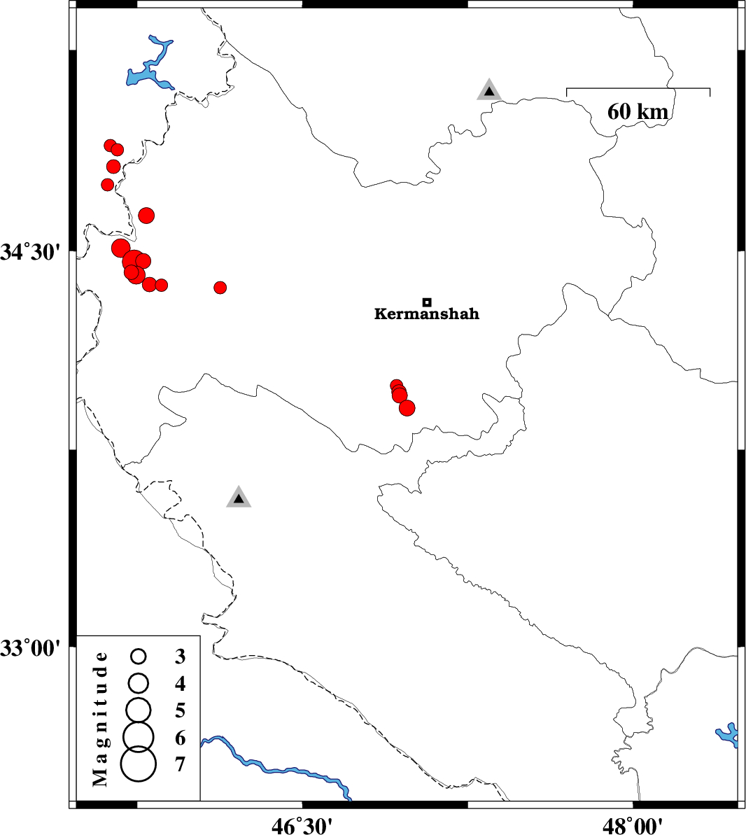 | 2018/01/04 | 08:19:11.4 | 11:49:11.4 | 33.968 | 46.938 | 14 | ML3 | Kermanshah Province, 39 km South-West of Kermanshah | ||