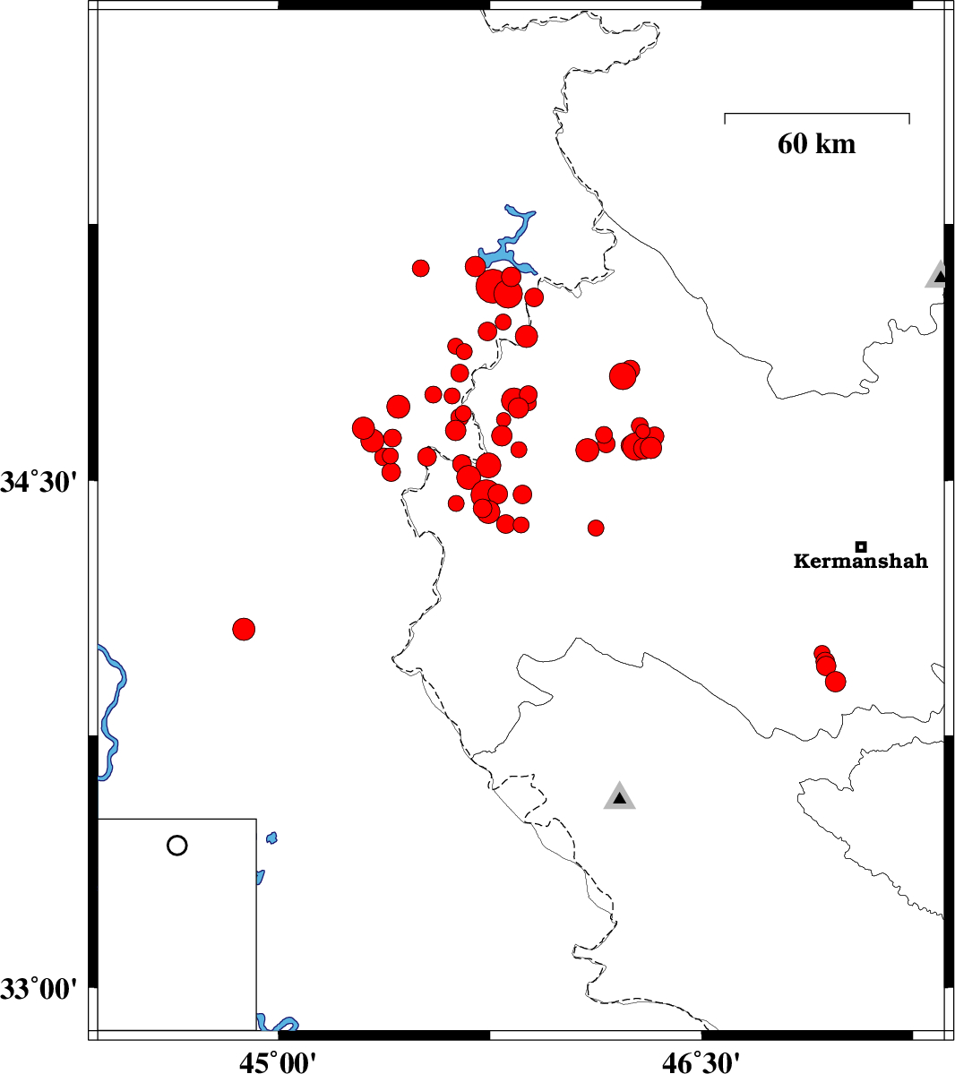 | 2018/01/04 | 08:19:11.4 | 11:49:11.4 | 33.968 | 46.938 | 14 | ML3 | Kermanshah Province, 39 km South-West of Kermanshah | ||