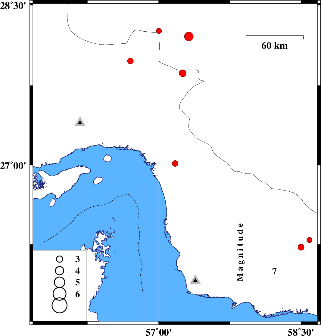| 2018/01/06 | 00:26:14.4 | 03:56:14.4 | 26.292 | 58.591 | 14 | ML2.6 | Hormozgan Province, 110 km North-East of Jask | ||