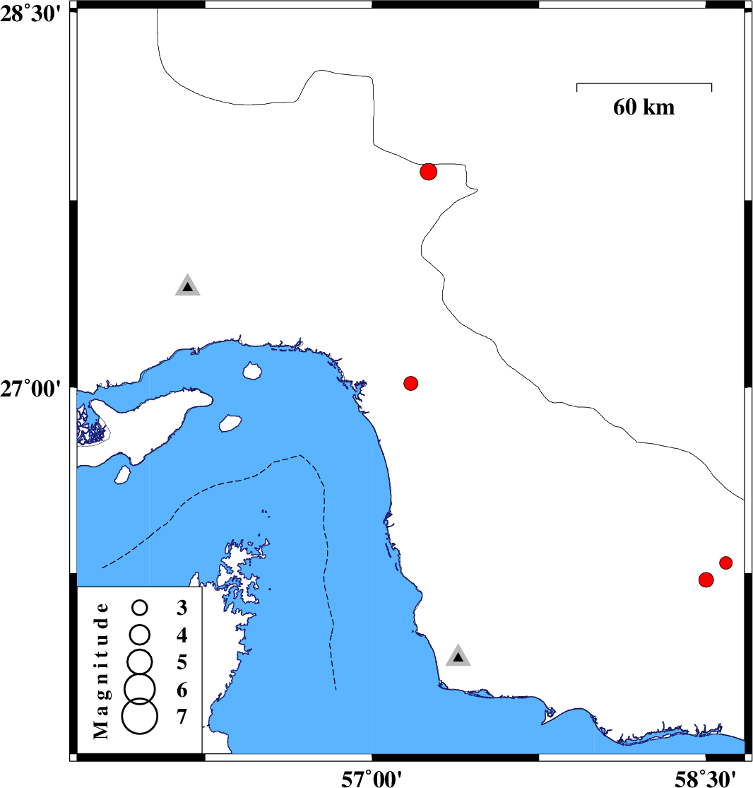 | 2018/01/02 | 08:54:30.4 | 12:24:30.4 | 26.222 | 58.501 | 18 | ML3 | Hormozgan Province, 98 km North-East of Jask |