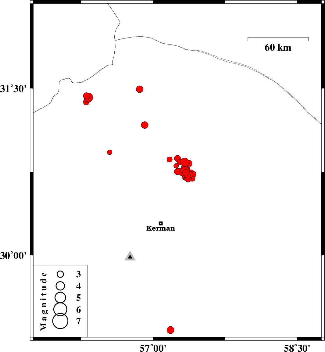 2018/01/07 12:04:32.1 15:34:32.1 30.76957.33814 ML3.7 Kerman Province, 59 km North-East of Kerman