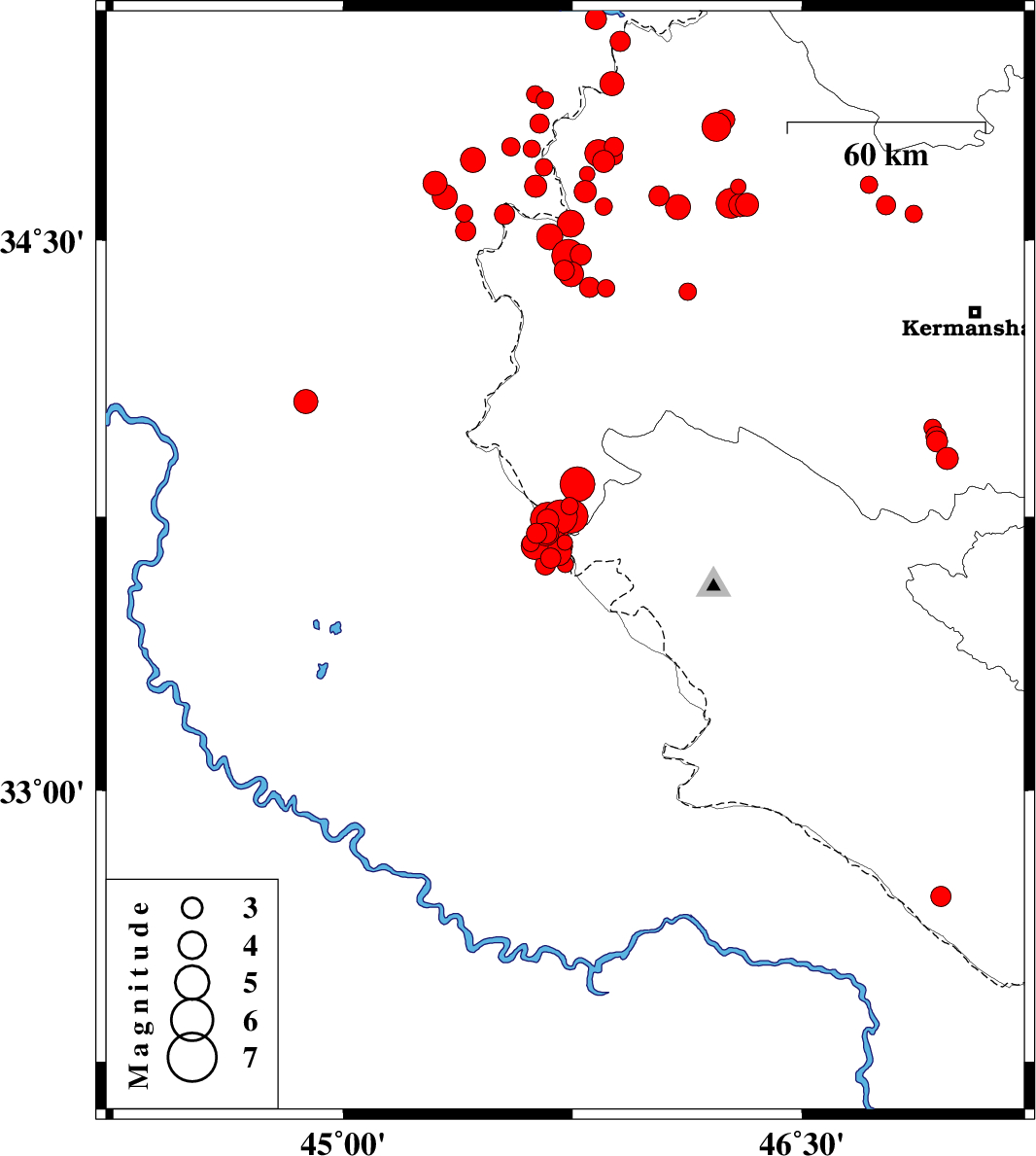 | 2018/01/04 | 08:19:11.4 | 11:49:11.4 | 33.968 | 46.938 | 14 | ML3 | Kermanshah Province, 39 km South-West of Kermanshah | ||