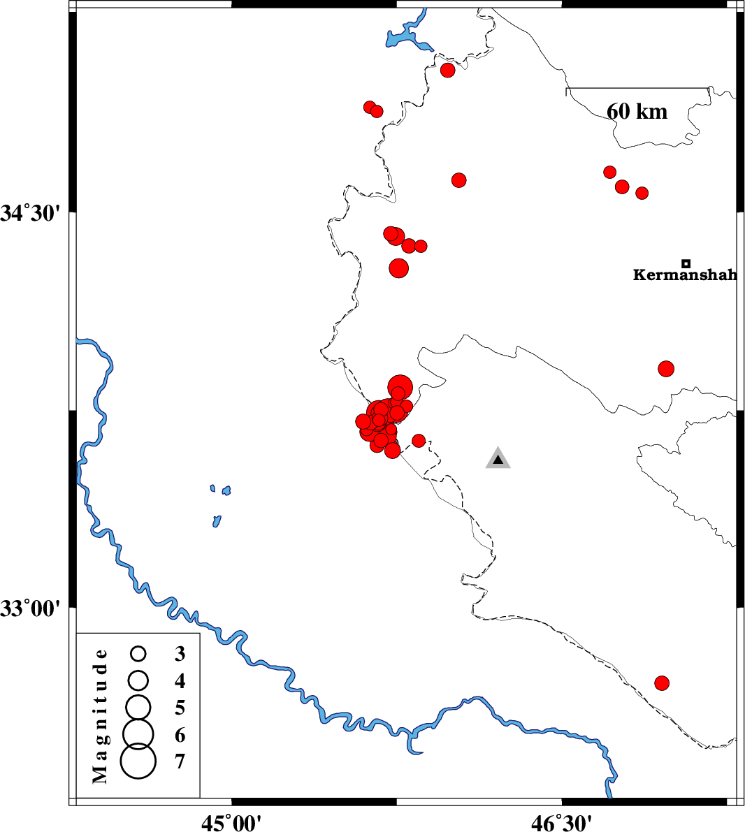 | 2018/01/14 | 04:13:53.4 | 07:43:53.4 | 33.766 | 45.794 | 6 | ML2.6 | Kermanshah Province, 43 km South-West of Gilan-E-Gharb | ||