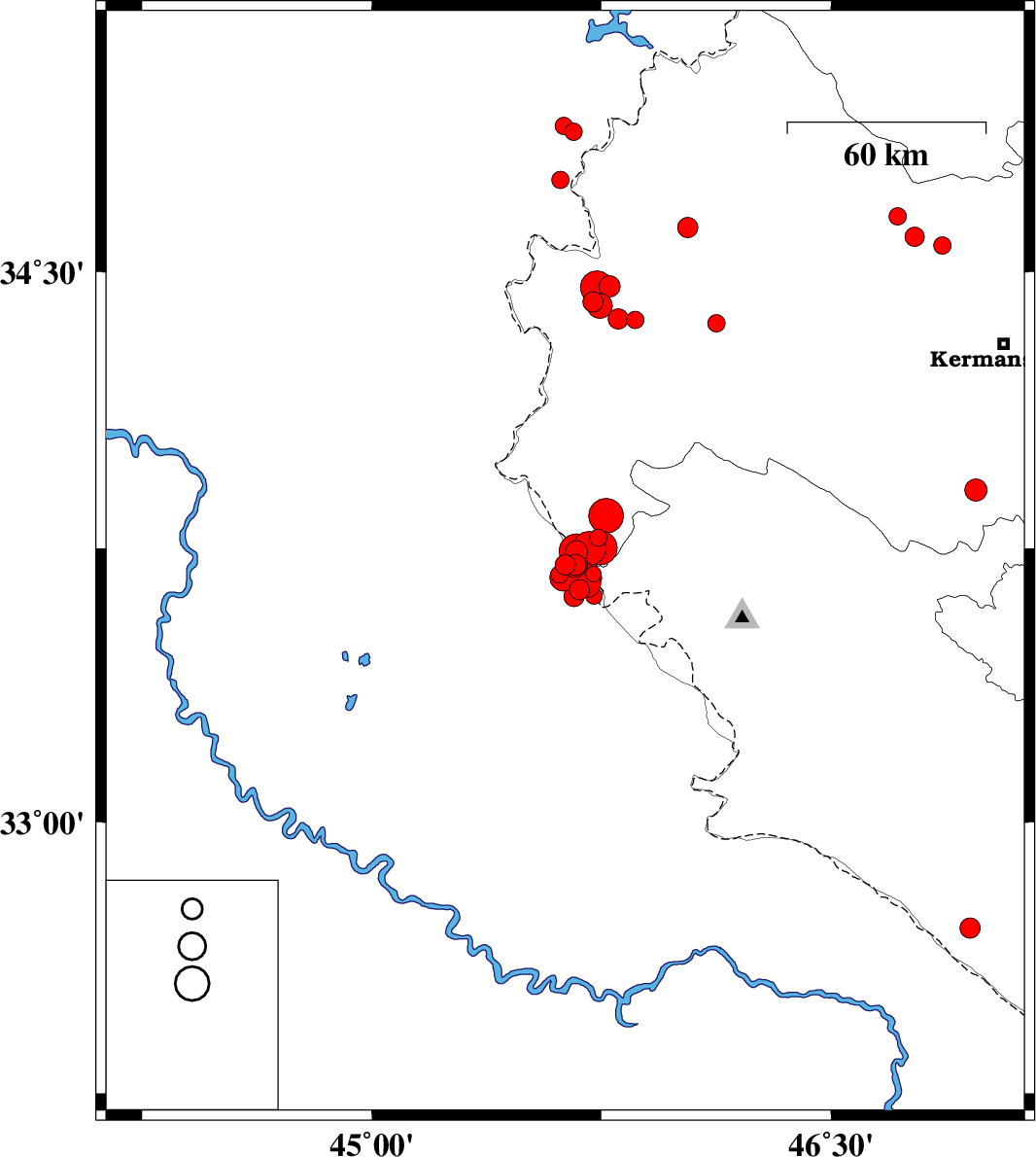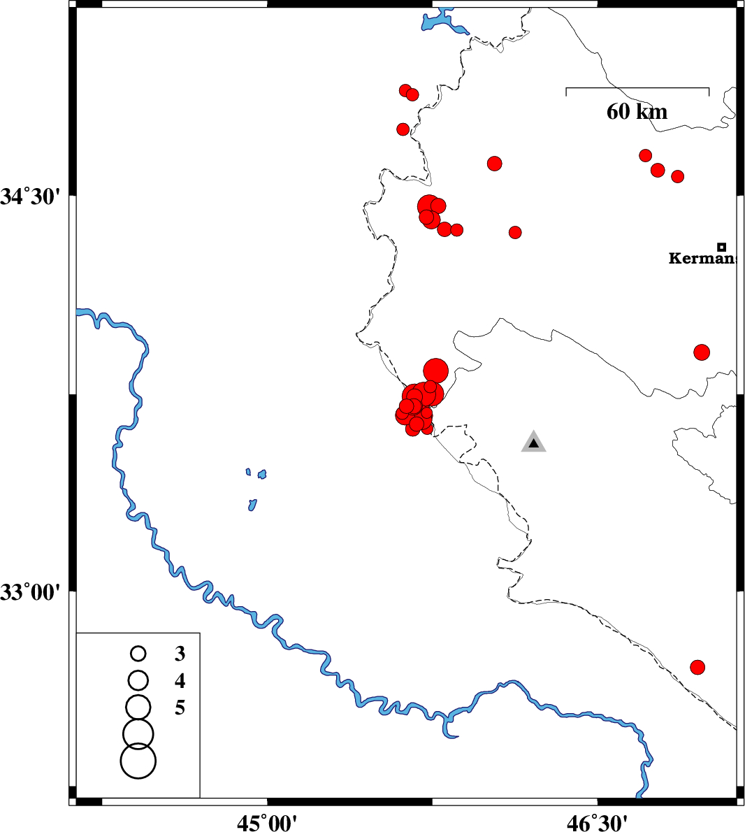 | 2018/01/09 | 13:16:28.5 | 16:46:28.5 | 34.62 | 46.032 | 15 | ML3 | Kermanshah Province, 22 km North-East of Sar-e pol-e zahab | ||