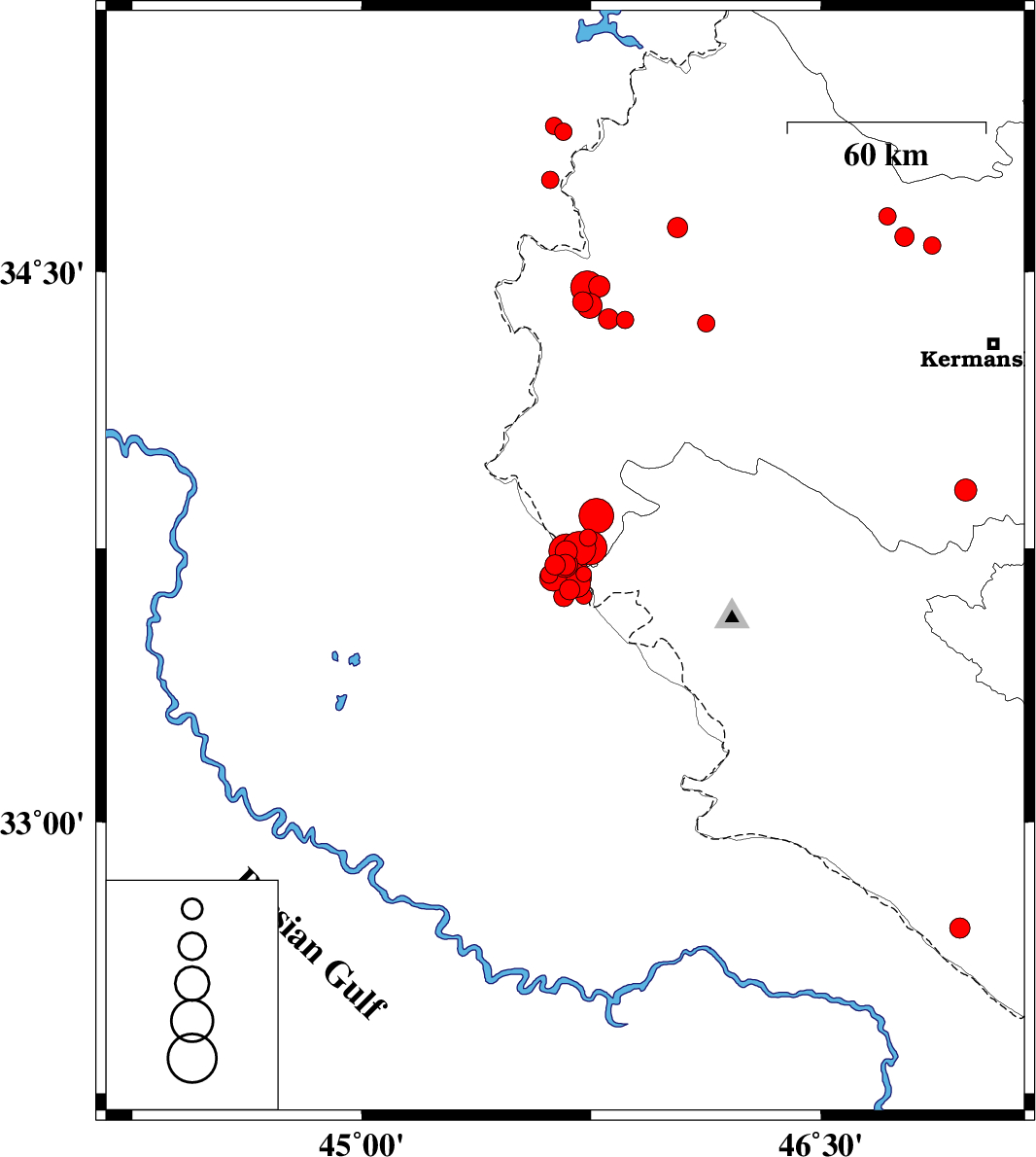 | 2018/01/09 | 13:16:28.5 | 16:46:28.5 | 34.62 | 46.032 | 15 | ML3 | Kermanshah Province, 22 km North-East of Sar-e pol-e zahab | ||