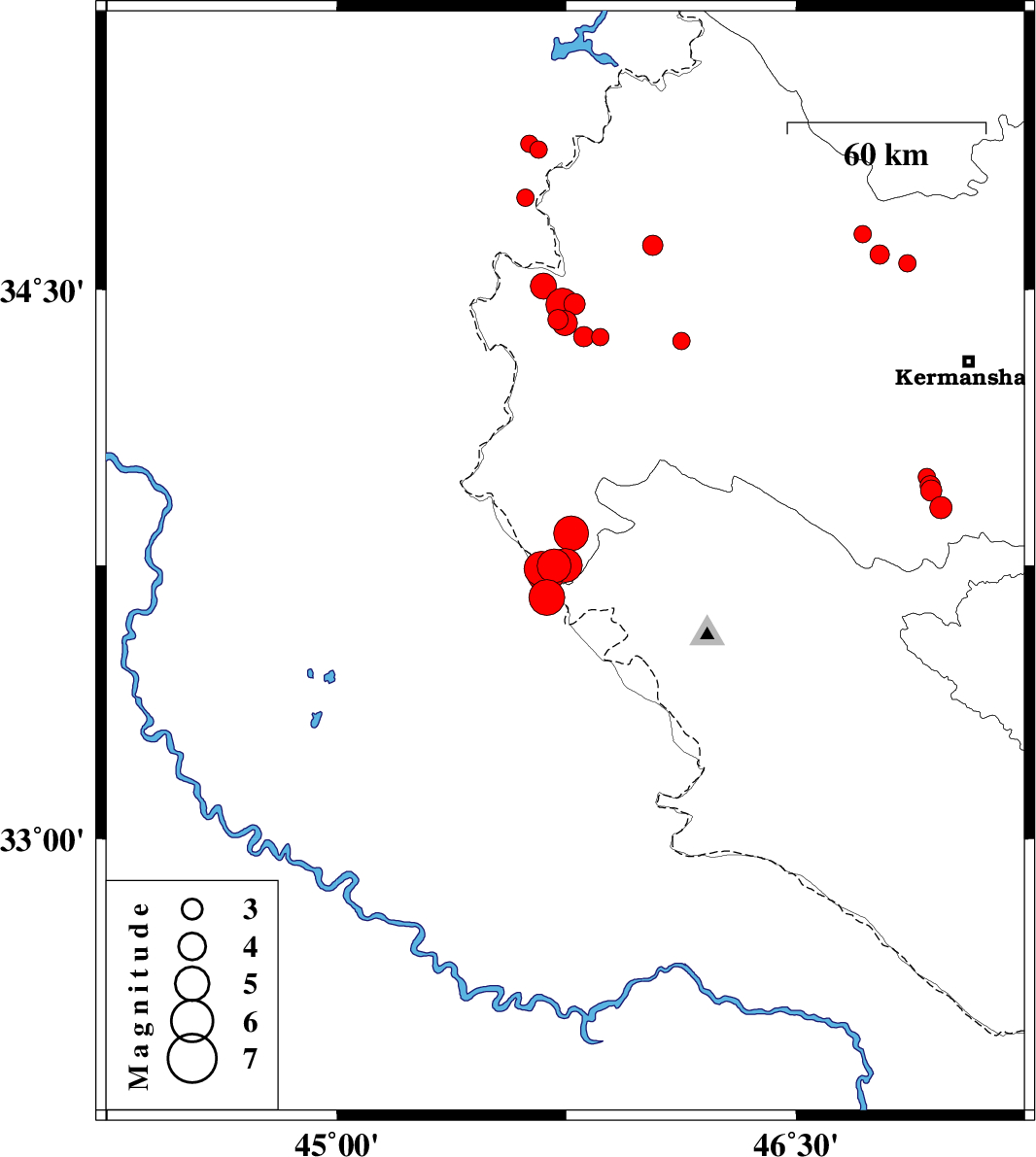 | 2018/01/04 | 08:18:38.6 | 11:48:38.6 | 33.992 | 46.927 | 14 | ML2.6 | Kermanshah Province, 37 km South-West of Kermanshah |