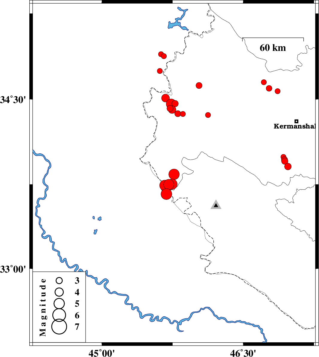 | 2018/01/04 | 08:18:38.6 | 11:48:38.6 | 33.992 | 46.927 | 14 | ML2.6 | Kermanshah Province, 37 km South-West of Kermanshah |