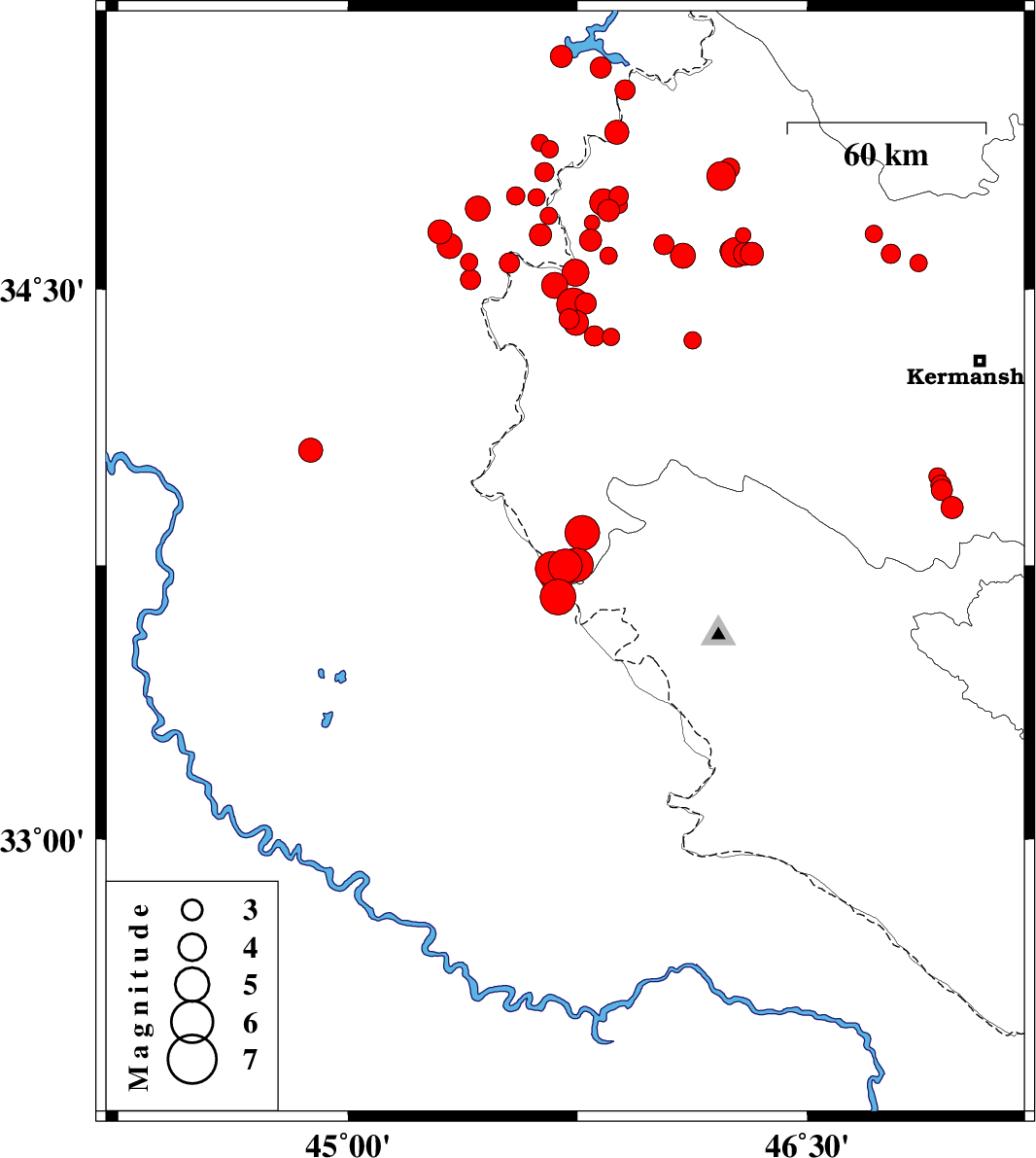 | 2018/01/04 | 08:19:11.4 | 11:49:11.4 | 33.968 | 46.938 | 14 | ML3 | Kermanshah Province, 39 km South-West of Kermanshah | ||